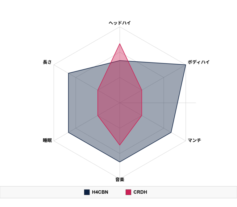 A.初めての方にはCRDHの方が体感が穏やかで扱いやすくおすすめです。H4CBNは体感が非常に強いため、経験者向けです。