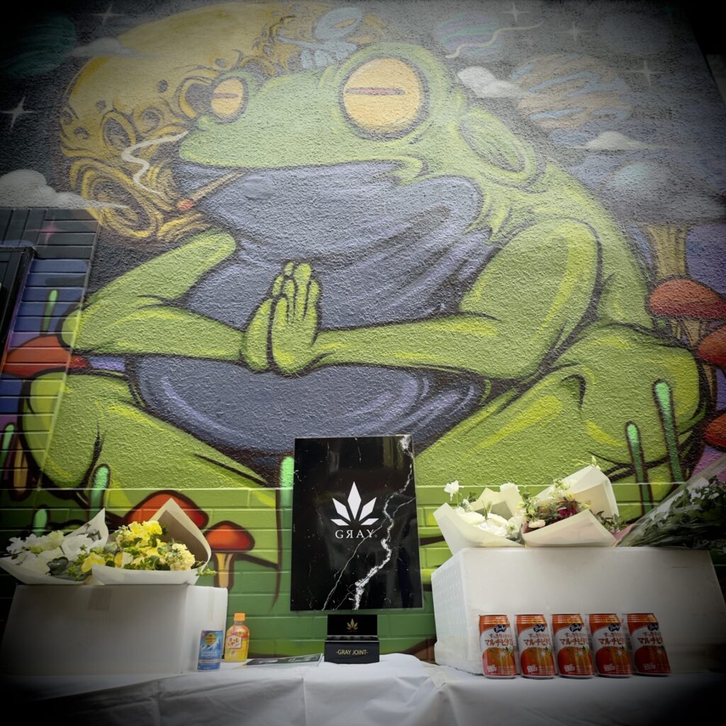 かつて多くの人々がまだ見ぬ出会いや体験に心を躍らせて通った道玄坂の小径は、しめやかな追悼の場へと姿を変えた。店のシンボルとして外壁に描かれた手を合わせるカエルのグラフィティが、まさか彼の冥福を祈る象徴になろうと誰が予想しただろうか。 有志によって設置された献花台には、連日多くの花束や供物が絶えることなく手向けられた。 それは彼に対する人望の厚さを物語るとともに、彼の無念を晴らすという残された人々の決意の表れでもあった。