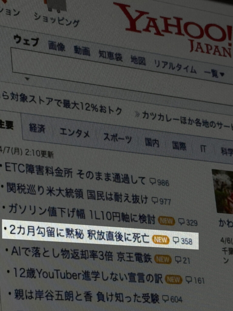 2025年4月7日。 残された人々の心がやっと落ち着き始めた頃。 共同通信社の心ある記者の手によって、彼の最期と不起訴事実を伝えるひとつの記事が世に出た。 一時国内最大のポータルサイトであるヤフージャパンのトップにも掲載されたその記事は、 彼の名誉を晴らすために水面下で尽力し続けた支援者たちによるひとつの確実な成果だった。 あのとき権力と一体となって煽情的な報道を続けた大手メディアが、事件の結末と彼の最期に向き合い報じることはついになかった。