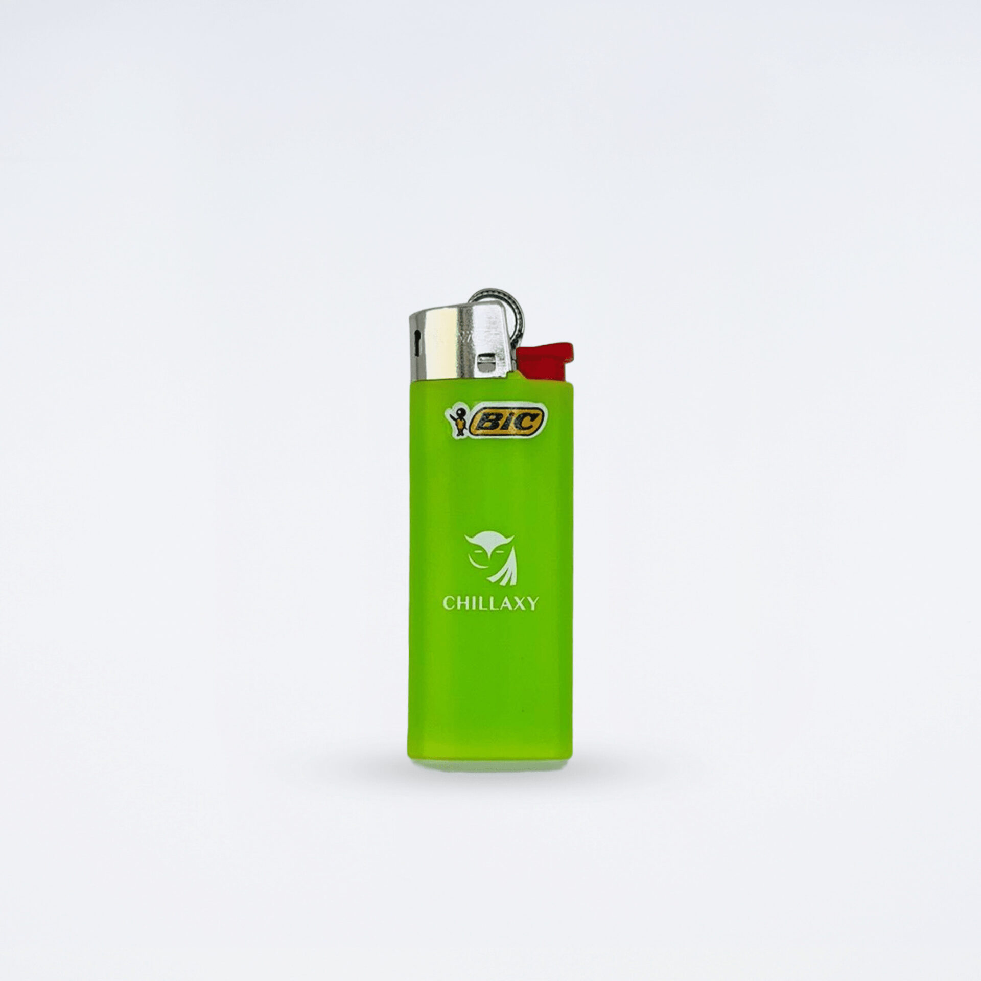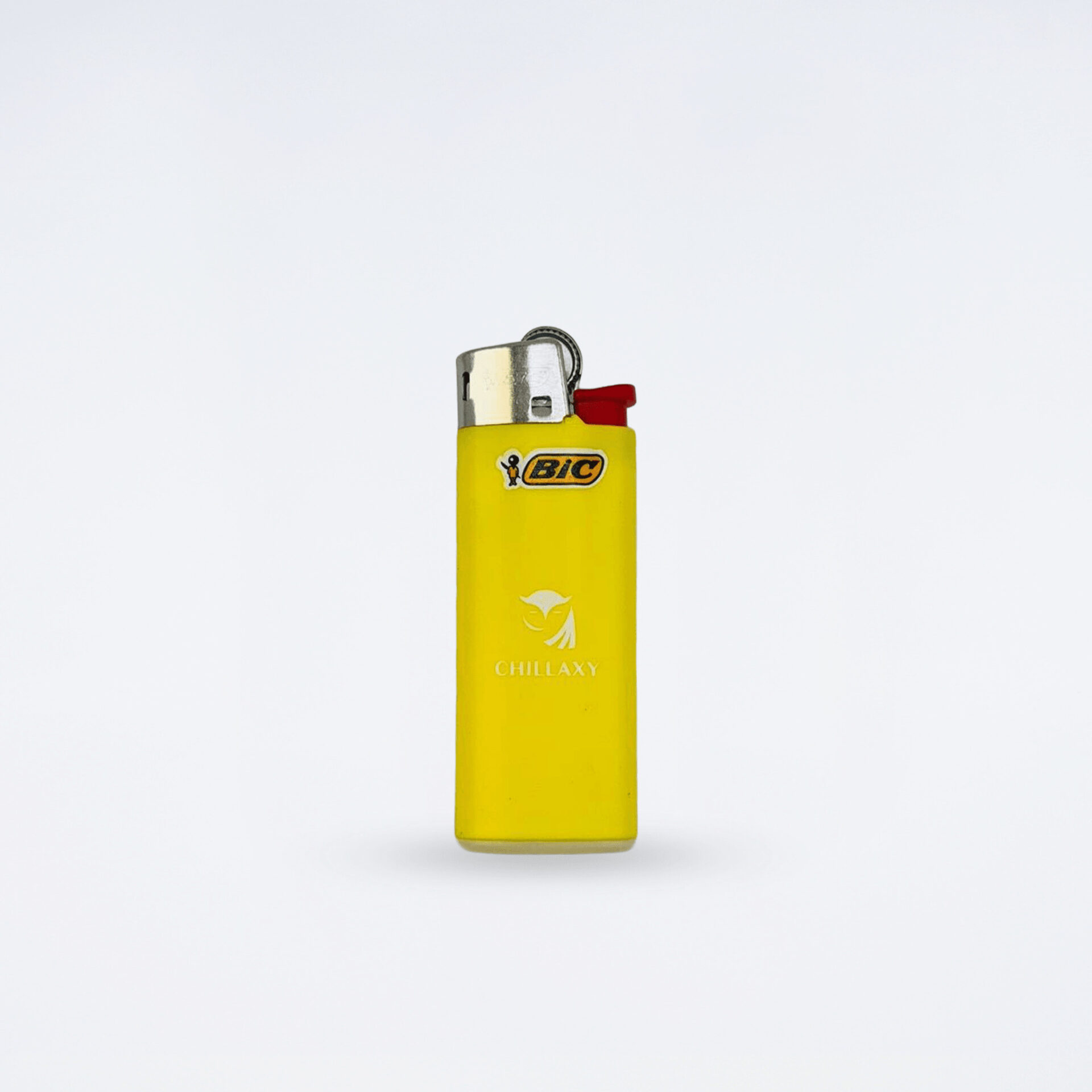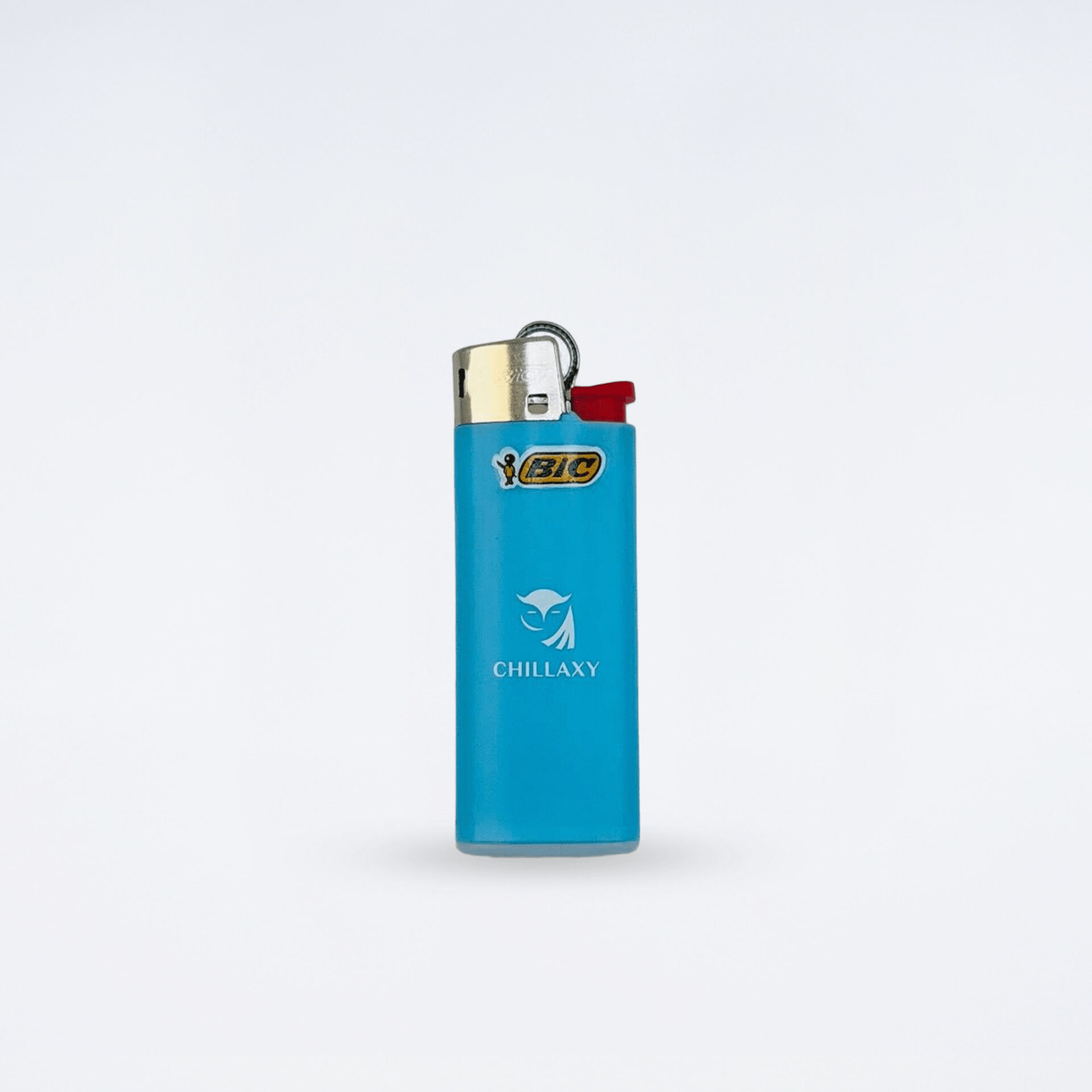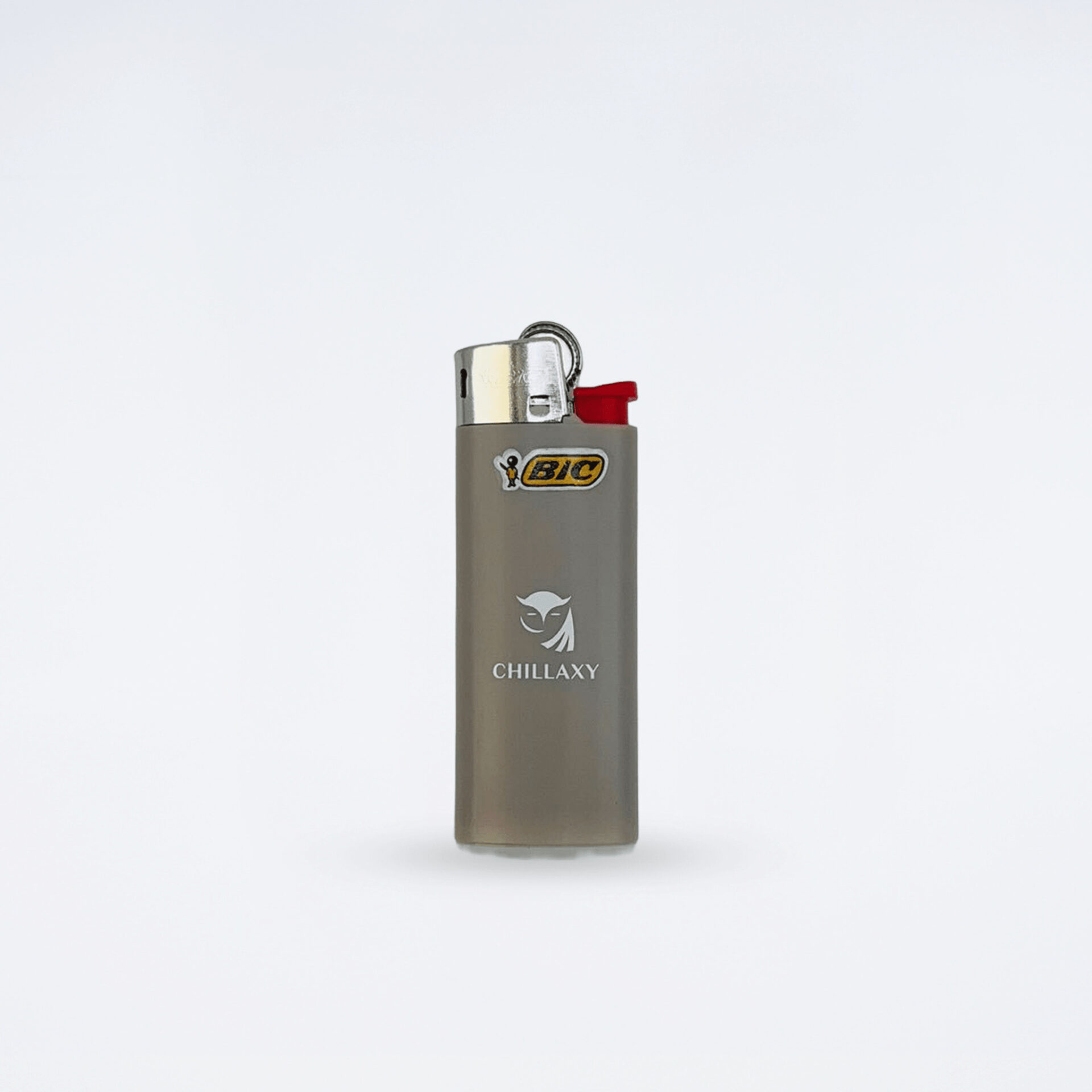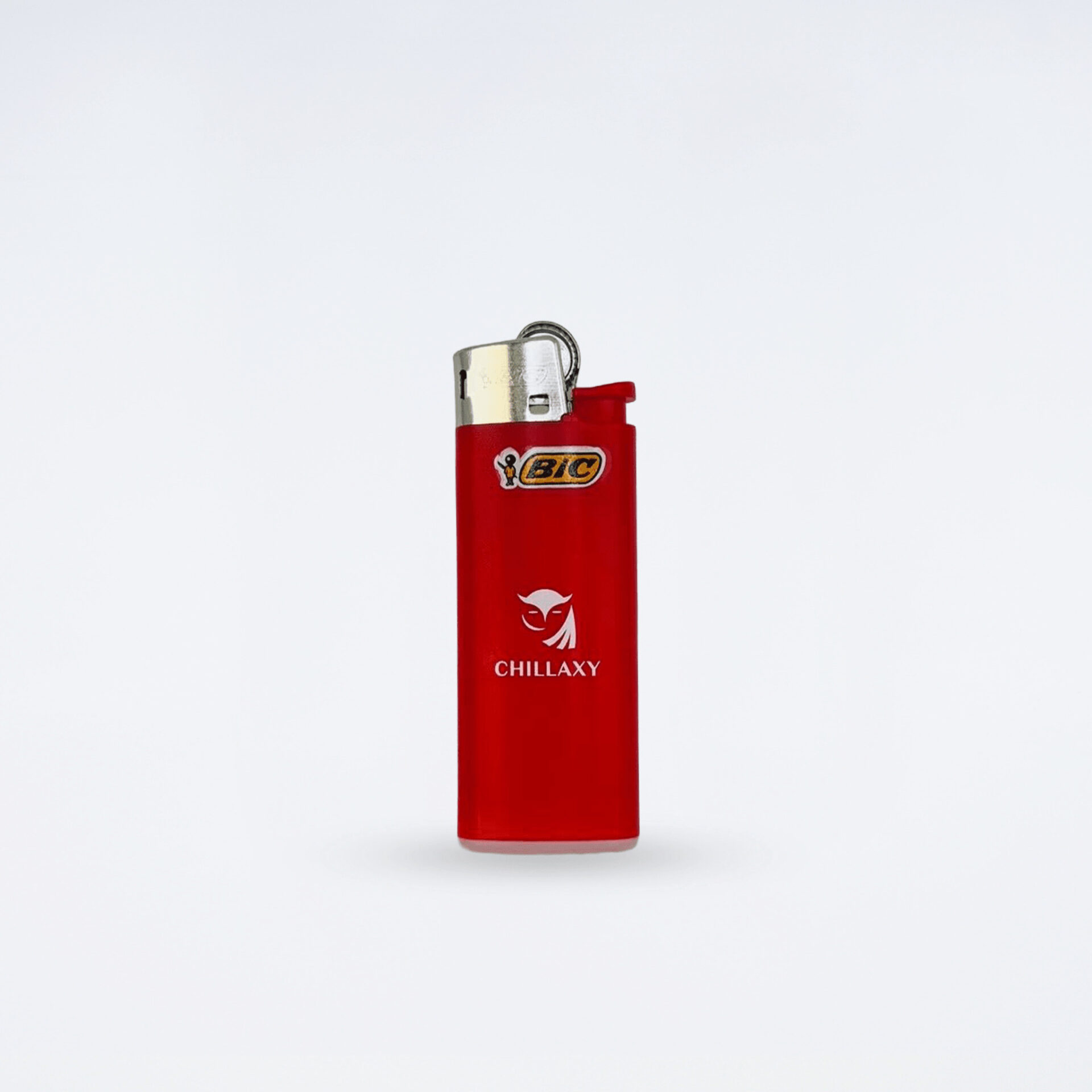 使い捨てのCHILLAXYロゴ入りミニBICライターです。安全基準を満たしたチャイルドレジスタンス機能付きで、安心してご利用頂けます。火をつける際はライター上部のやすり部分を指で勢いよく回し、下部に付いているガス弁を押し続けて下さい。安定した火でたばこなどへの着火が可能です。