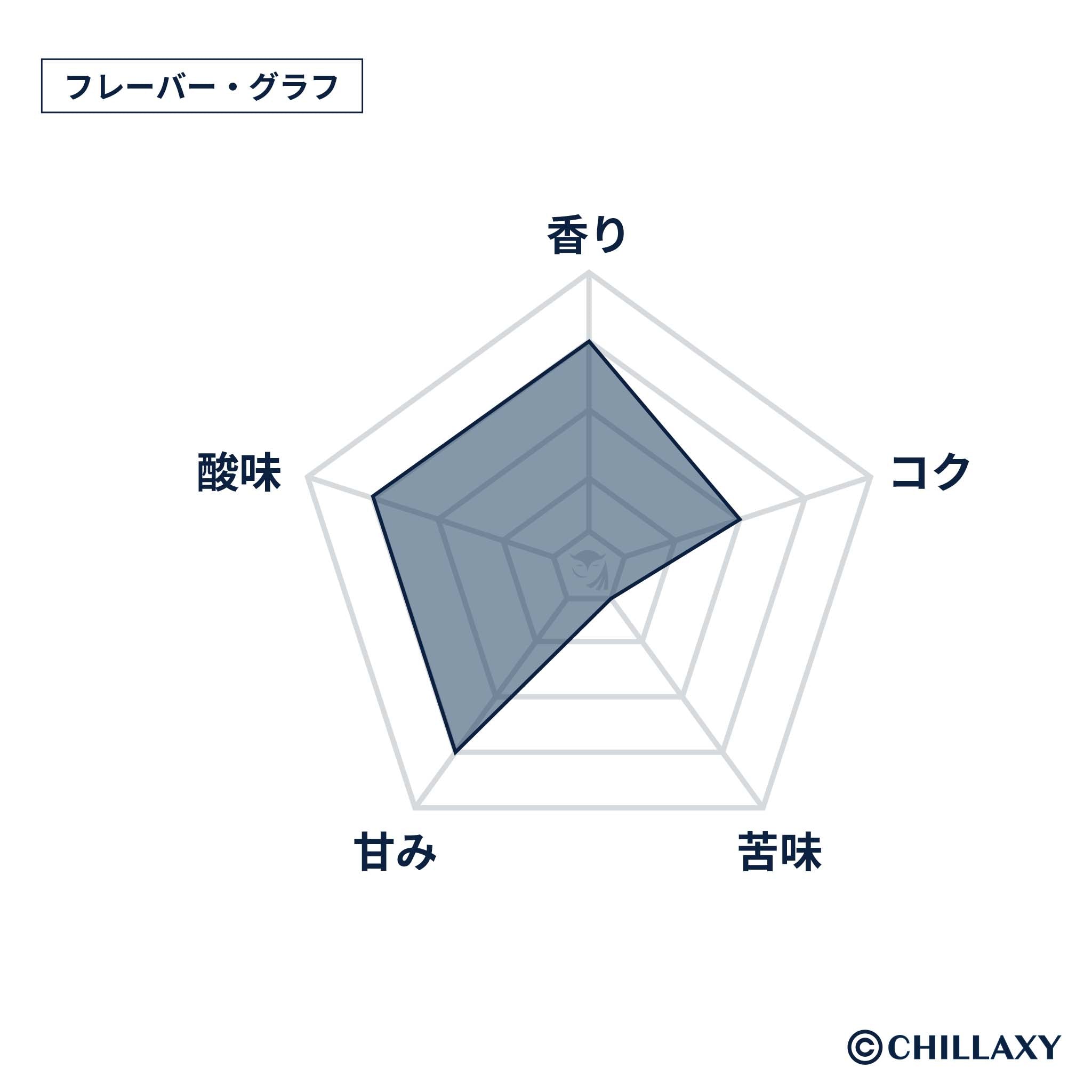 豊かな風味と酸味が特徴。香りと苦み、甘みのバランスがよく、豊かで奥深い味が口の中に広がります。