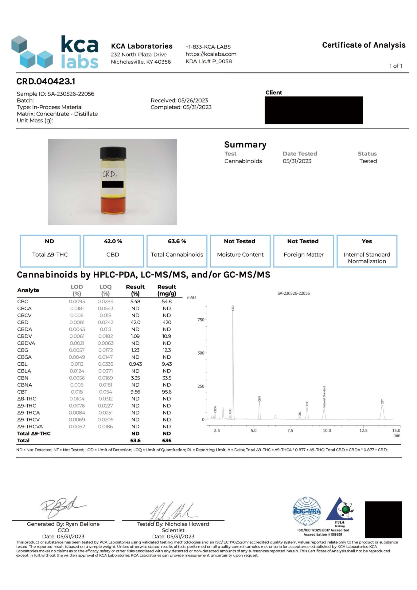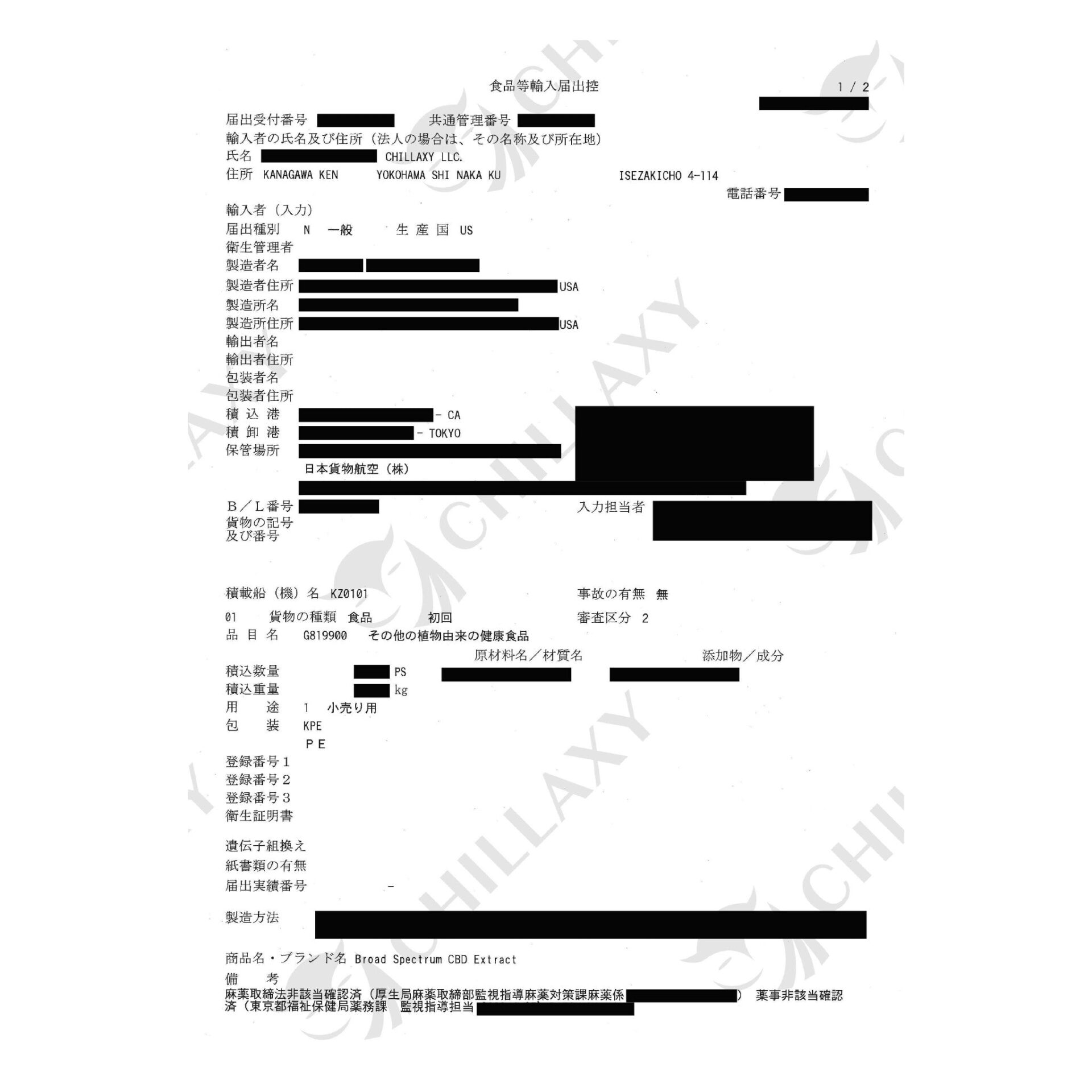 ・カンナビノイド濃度 90%以上:CBN 11.4%、CBG 10.3%、CBC 6.3%、CBT 2.0%、CBD及びその他麻抽出物 51.6%、テルペン 8.0%