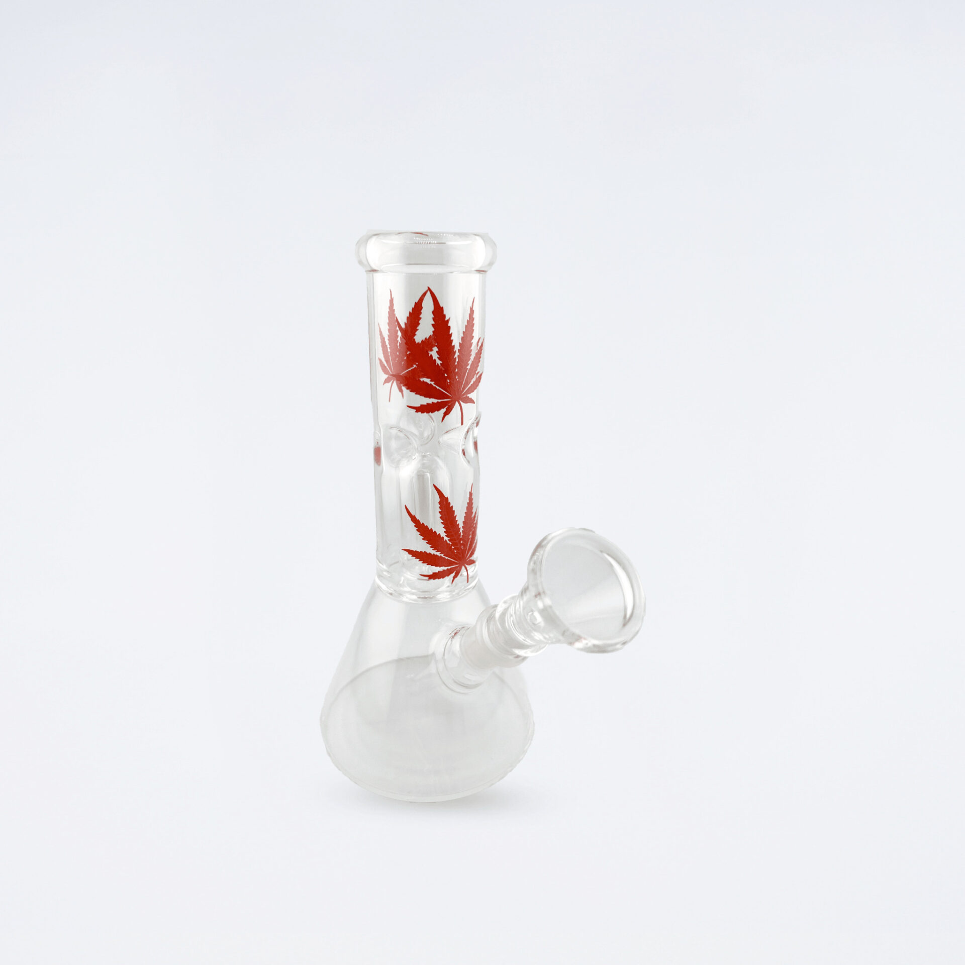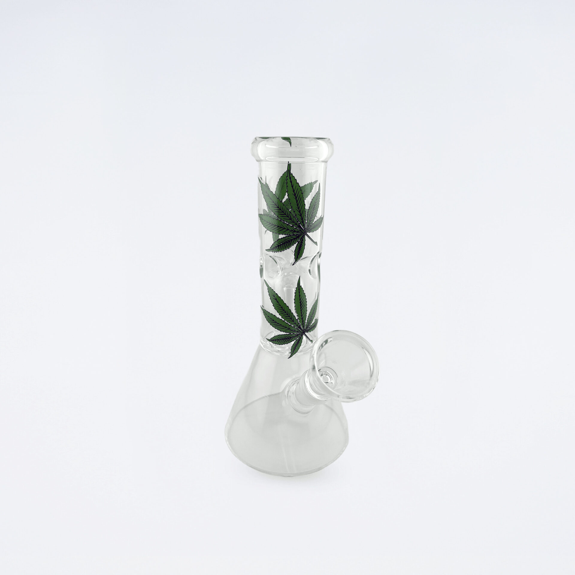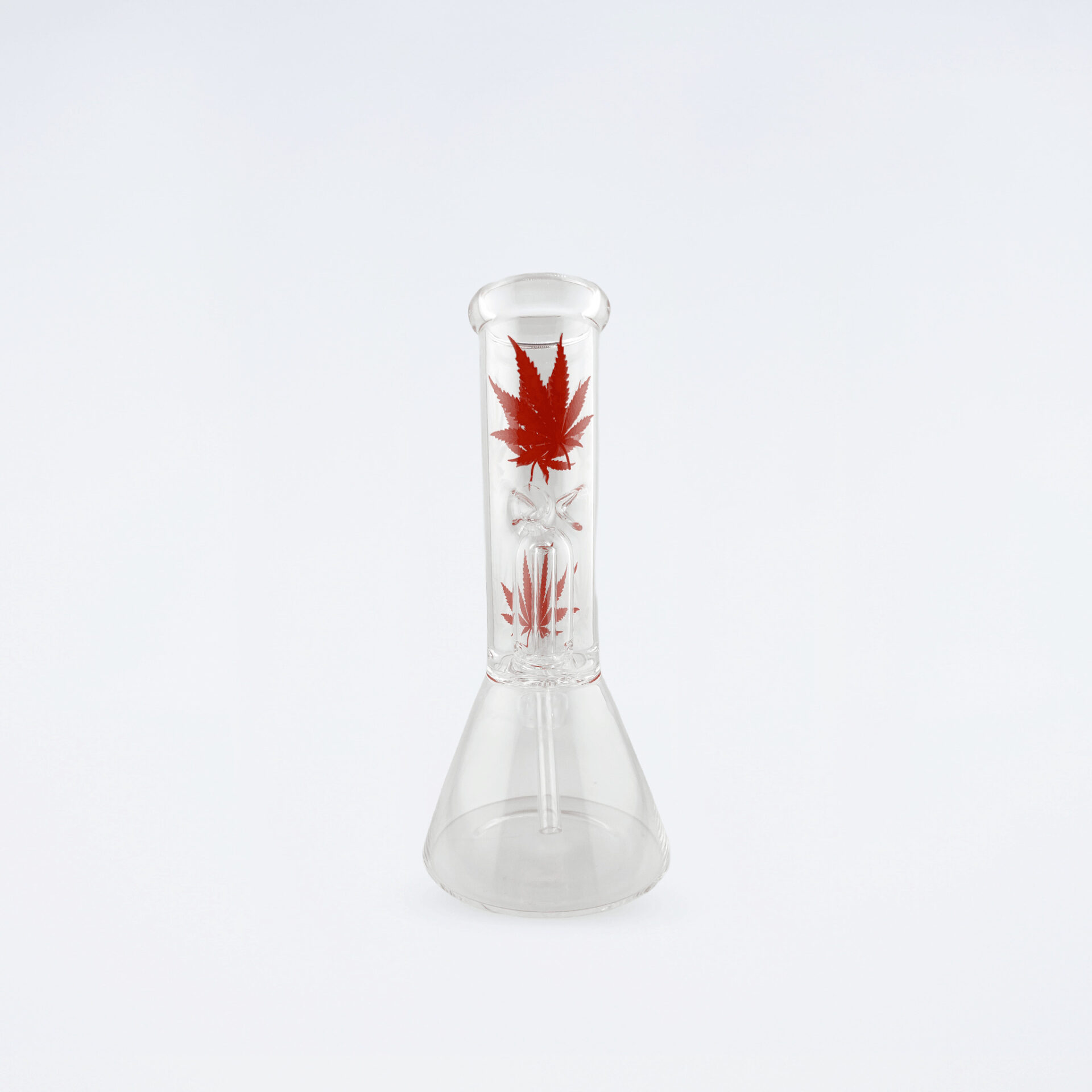 リーフマークがかわいらしいデザインのガラスボング。小型ながらもパーコレーター内蔵で、煙をしっかり濾過しながらなめらかな吸い心地を実現します。