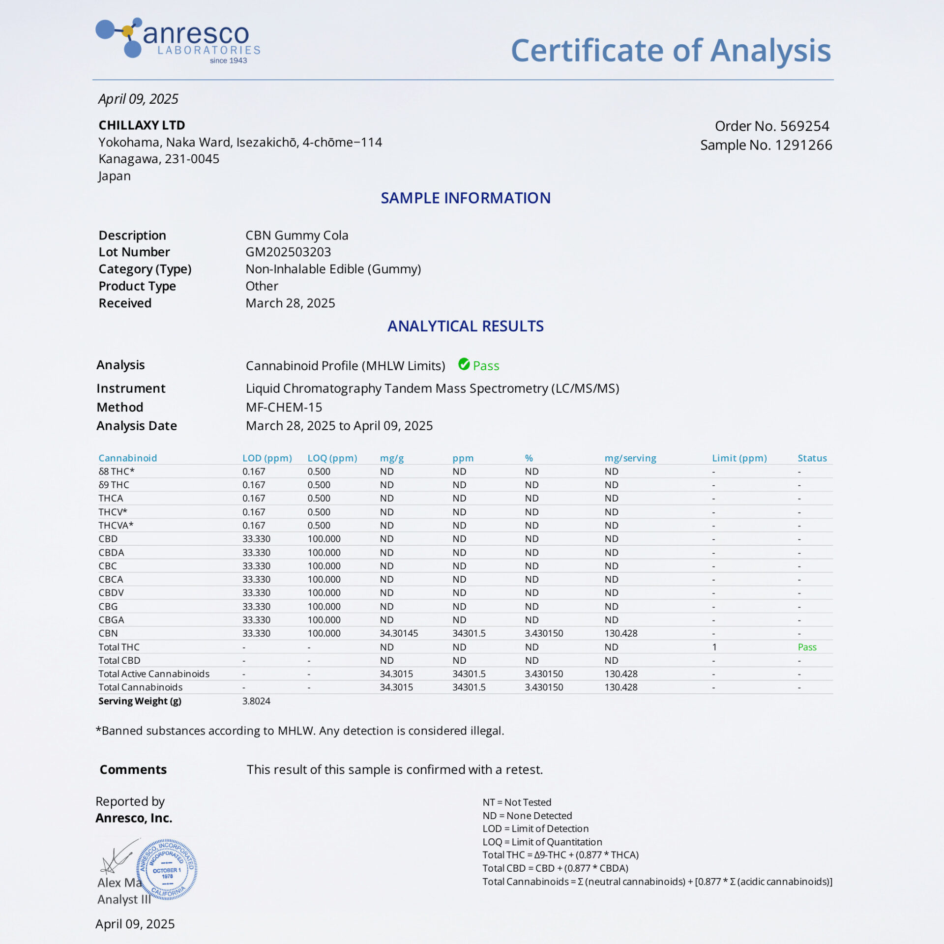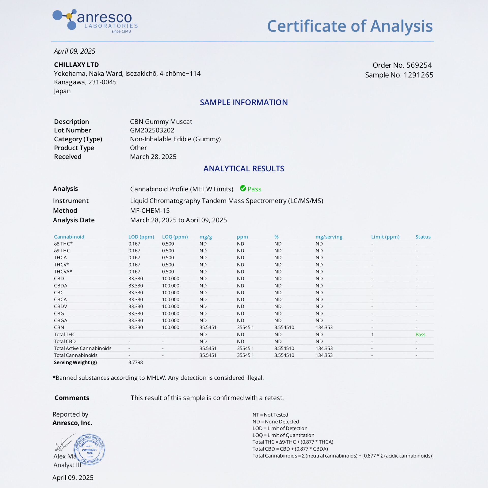 令和6年12月12日、大麻取締法改正後の新基準に対応した製品です。