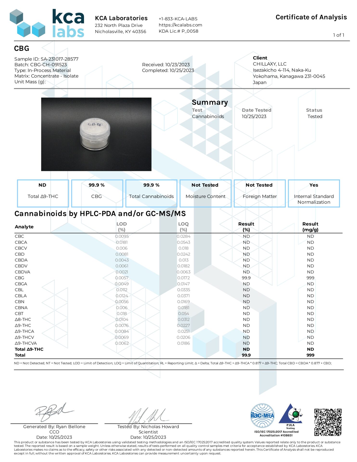 ・COA:1、2をご確認ください。