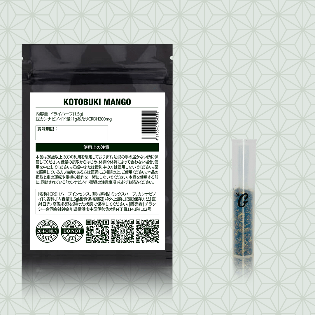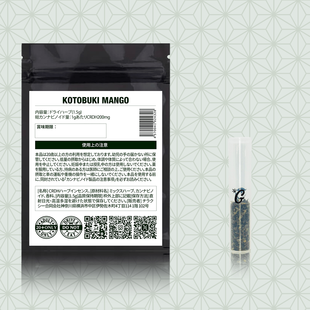 厳選されたミックスハーブ、テルペンを使用したCRDH配合のハーブ(1.5g)です。テルペンとハーブによる本格的な香りをお楽しみください。