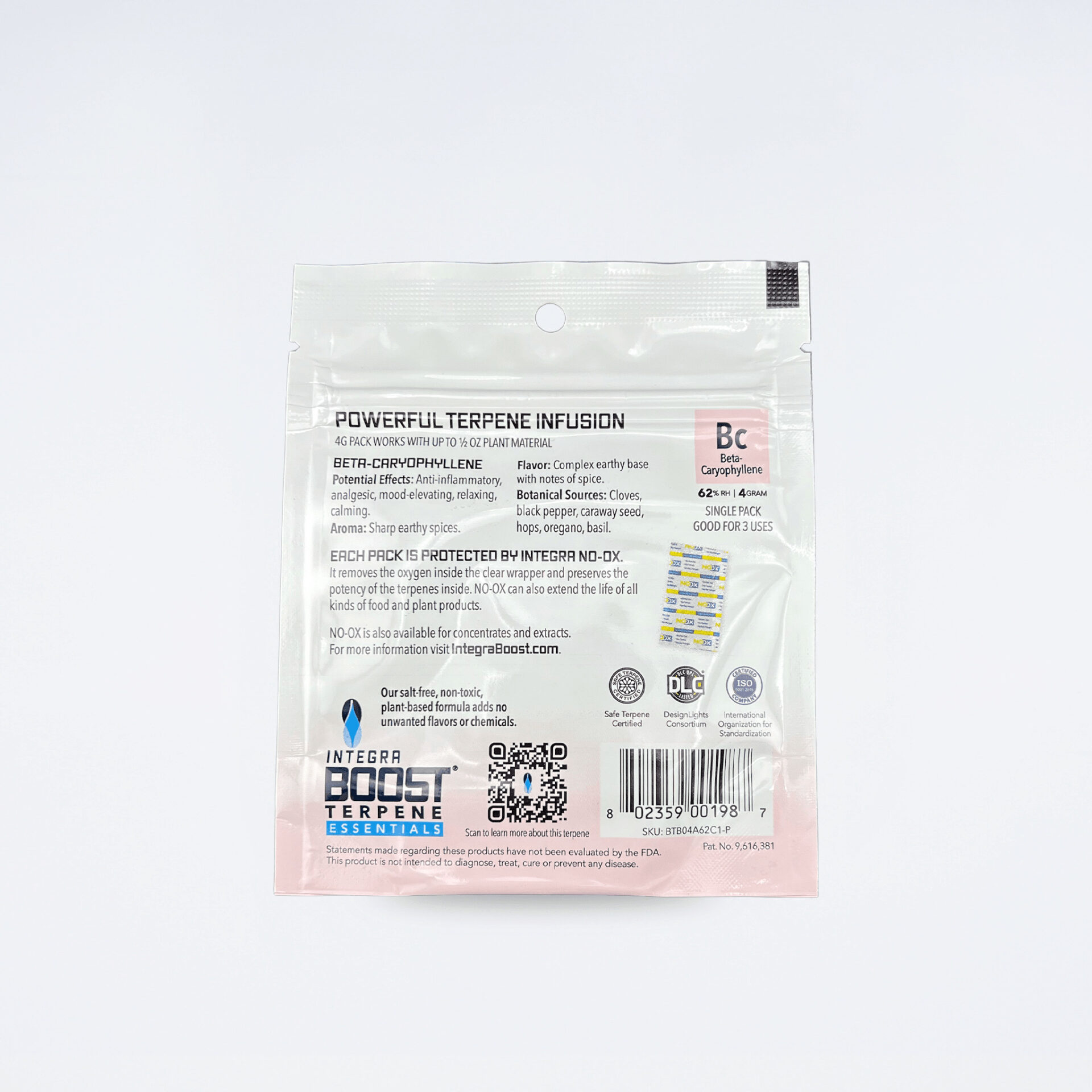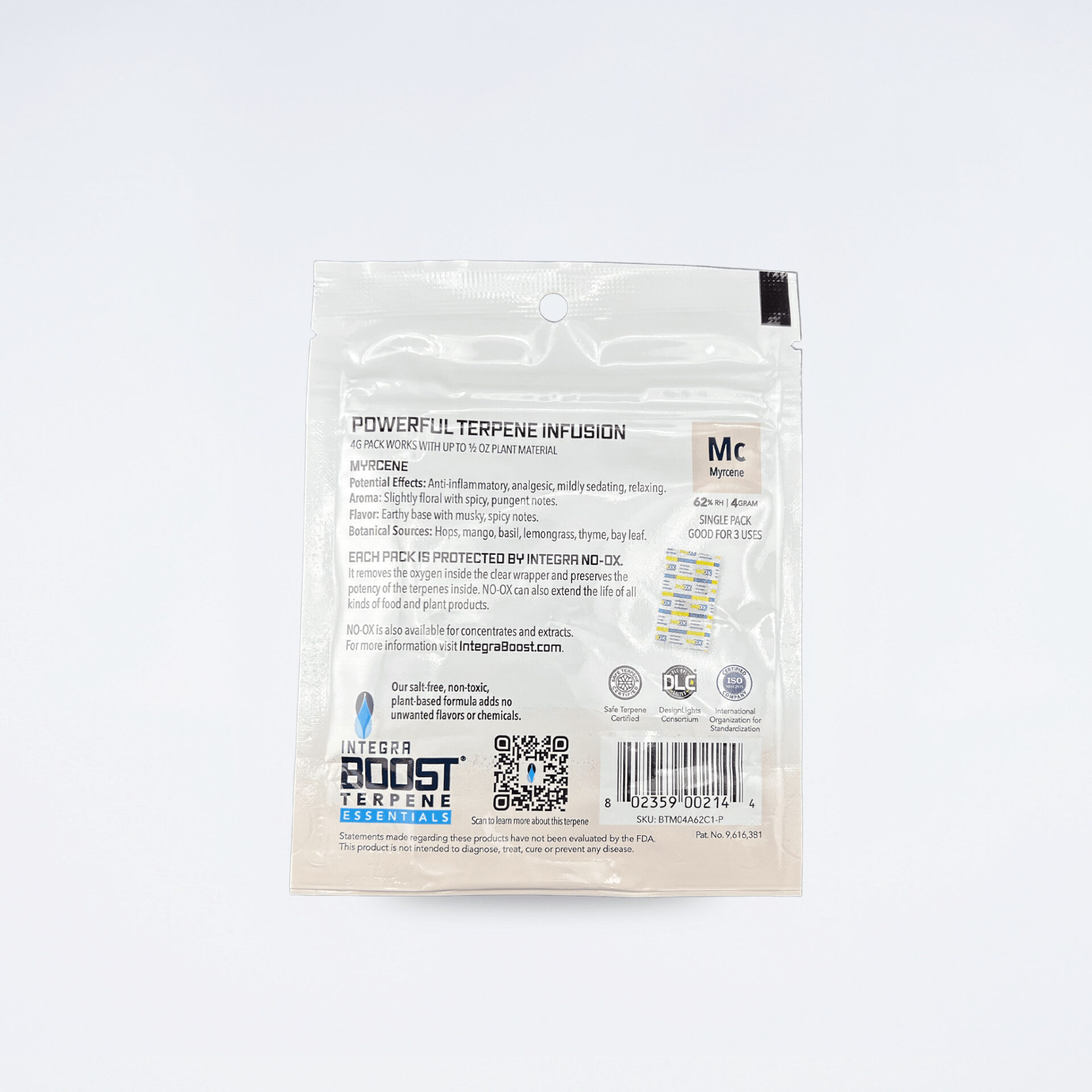 各パックには、Integra Boost の調湿剤と植物由来のフードグレードテルペンアイソレートを配合。