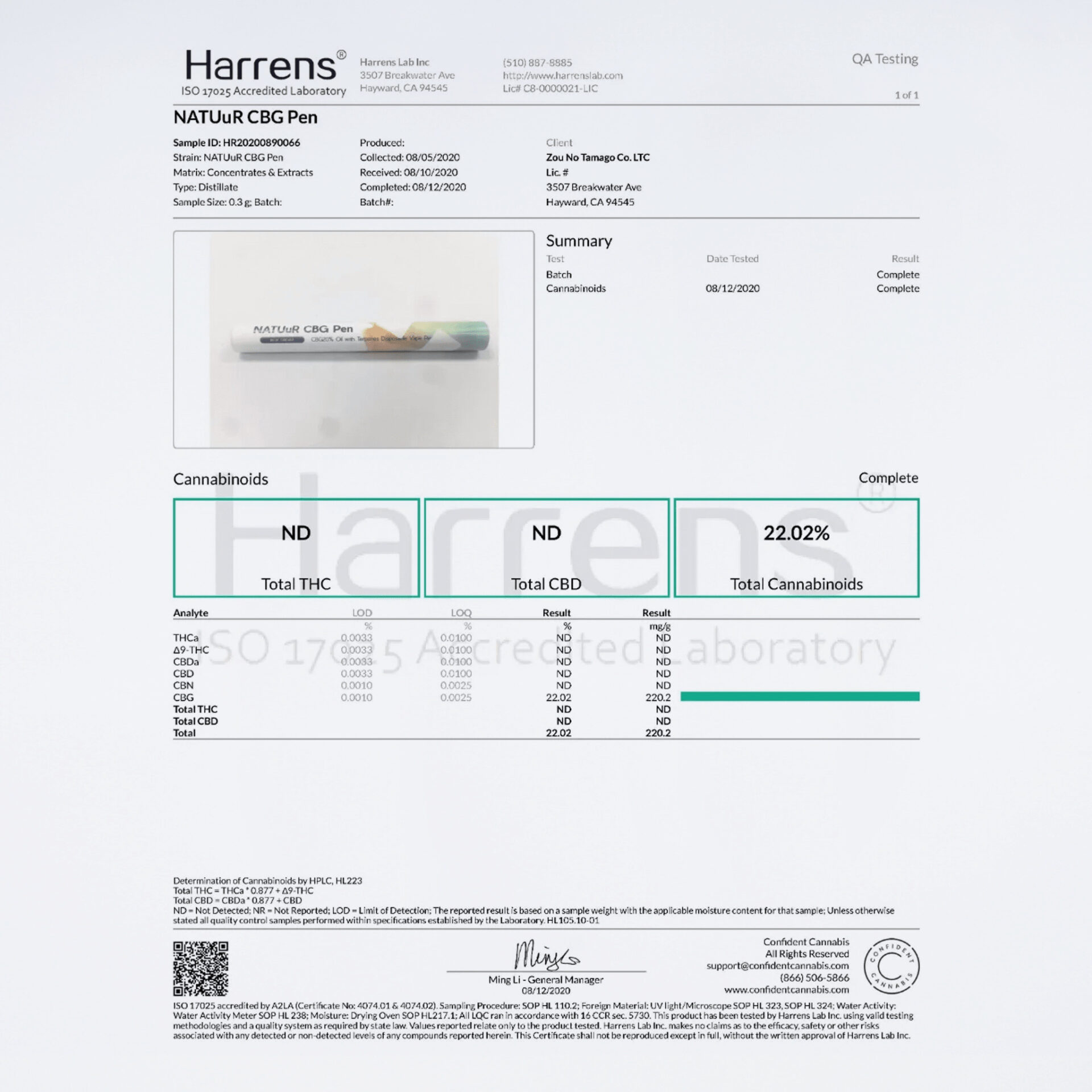 ・カンナビノイド濃度 :CBG 20%
