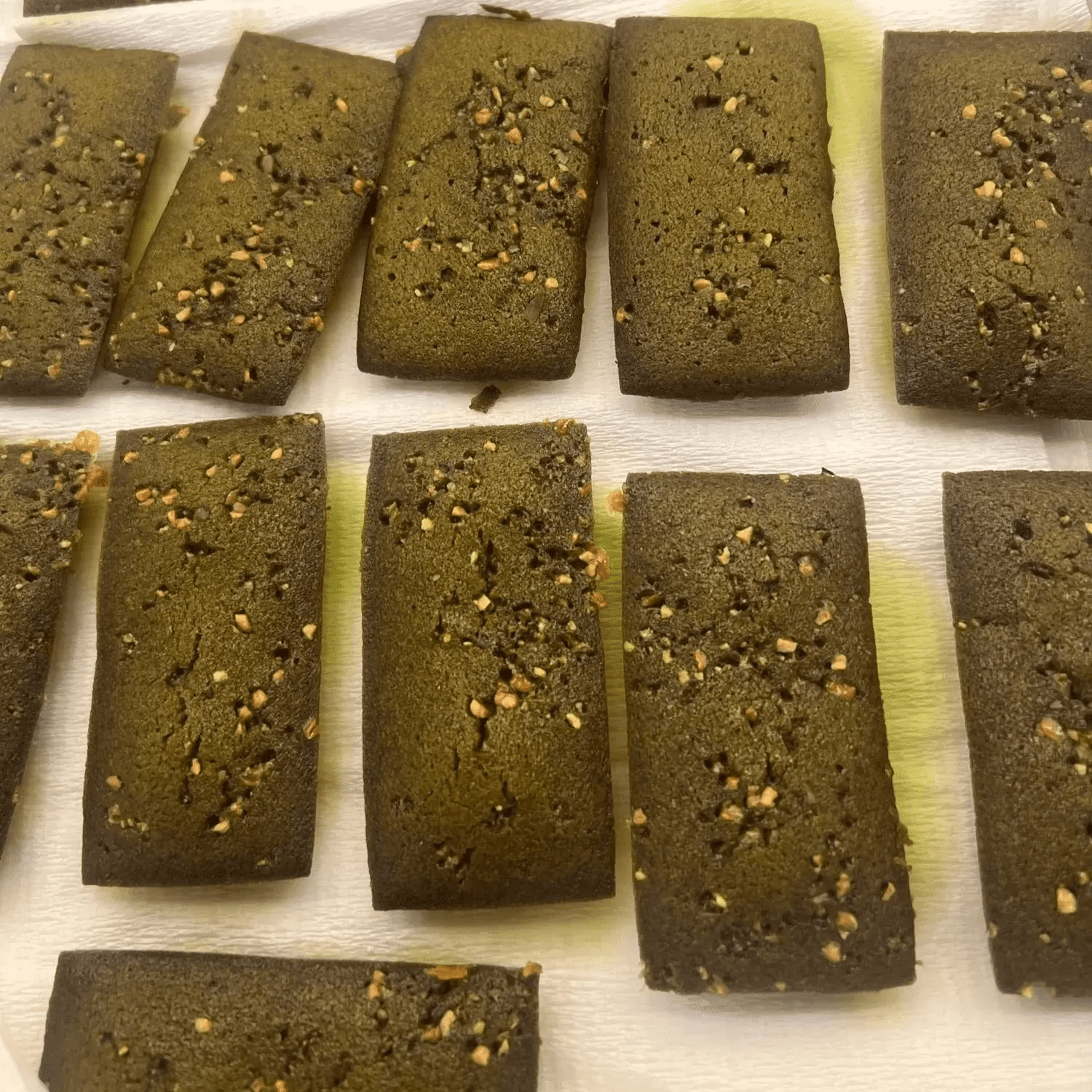 ・原材料【抹茶】:卵白、アーモンドプール、黒糖、バター、静岡県産抹茶パウダー、米粉、ホワイトチョコレート、シナモン、蜂蜜、CBN、アーモンド、クルミ