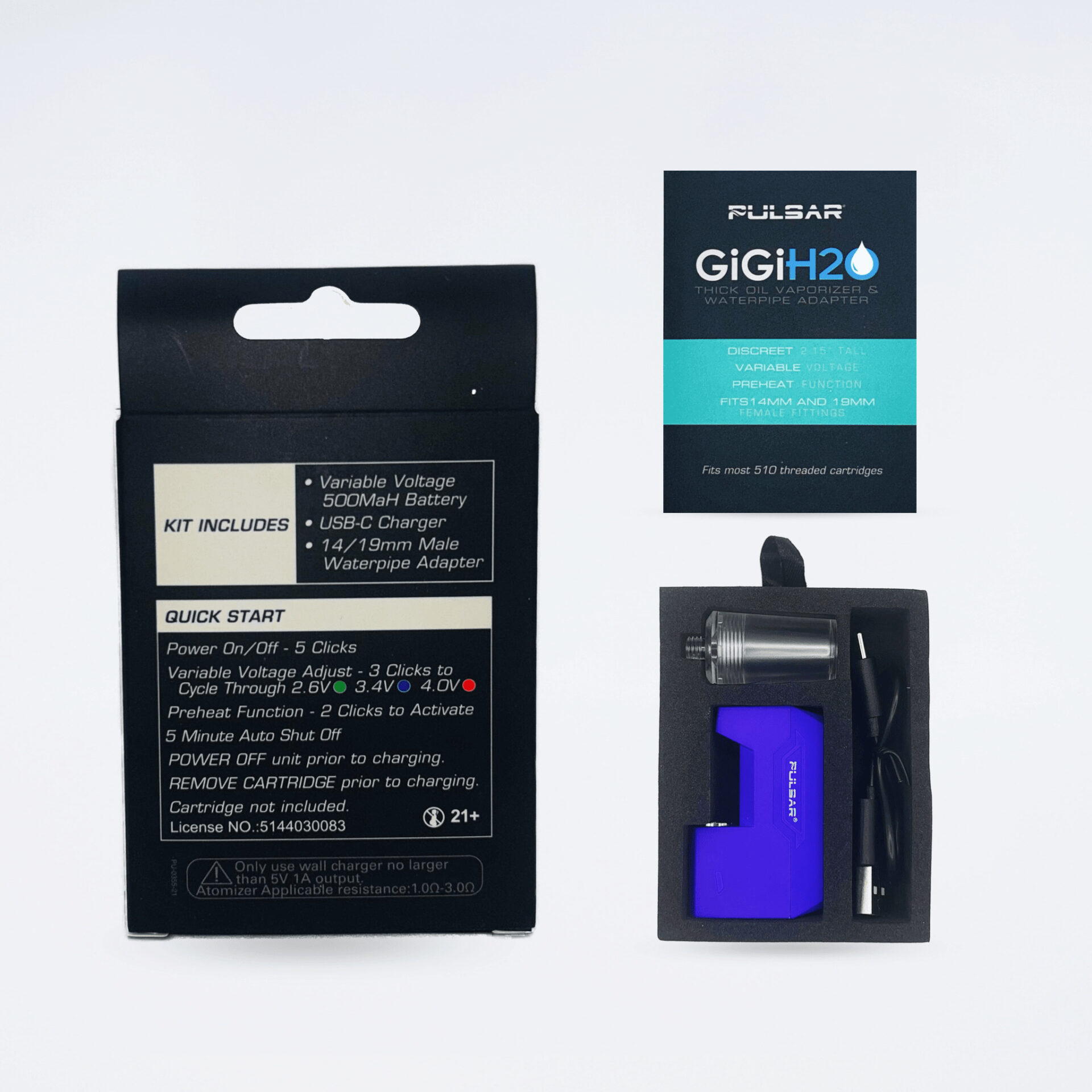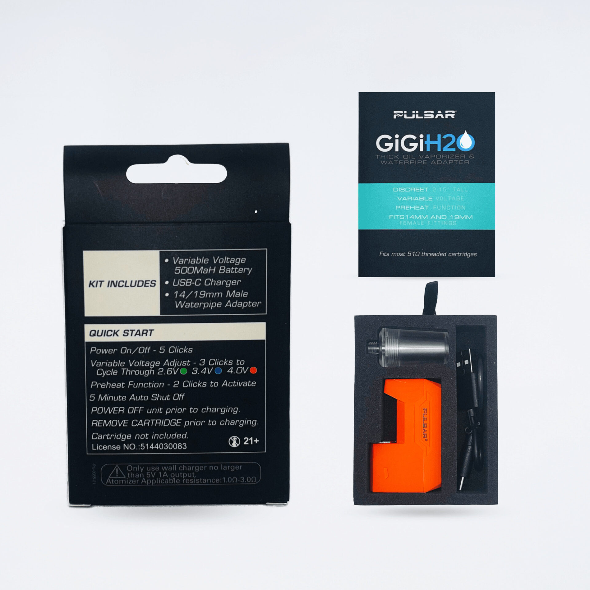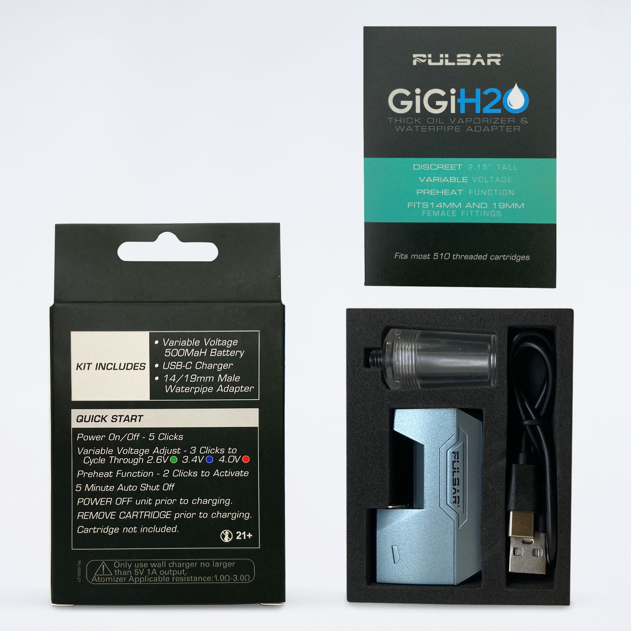 GiGi H2Oは、ボングで使用可能なオート型510規格バッテリーです。ボングを使用せず、通常の510規格バッテリーとしてもお使いいただけます。軽量でコンパクトサイズのため、持ち運びにも便利です。プレヒート機能搭載で、ワックス用アトマイザーにも対応しています。