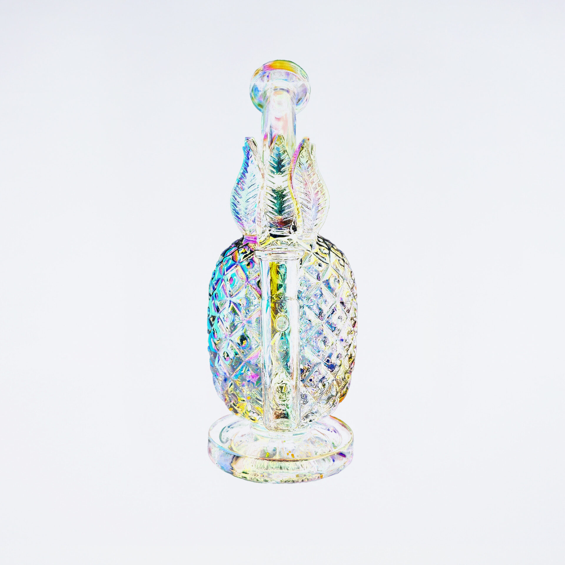 虹色にきらめくラグジュアリーなオーラをまとったパイナップルガラスボング。