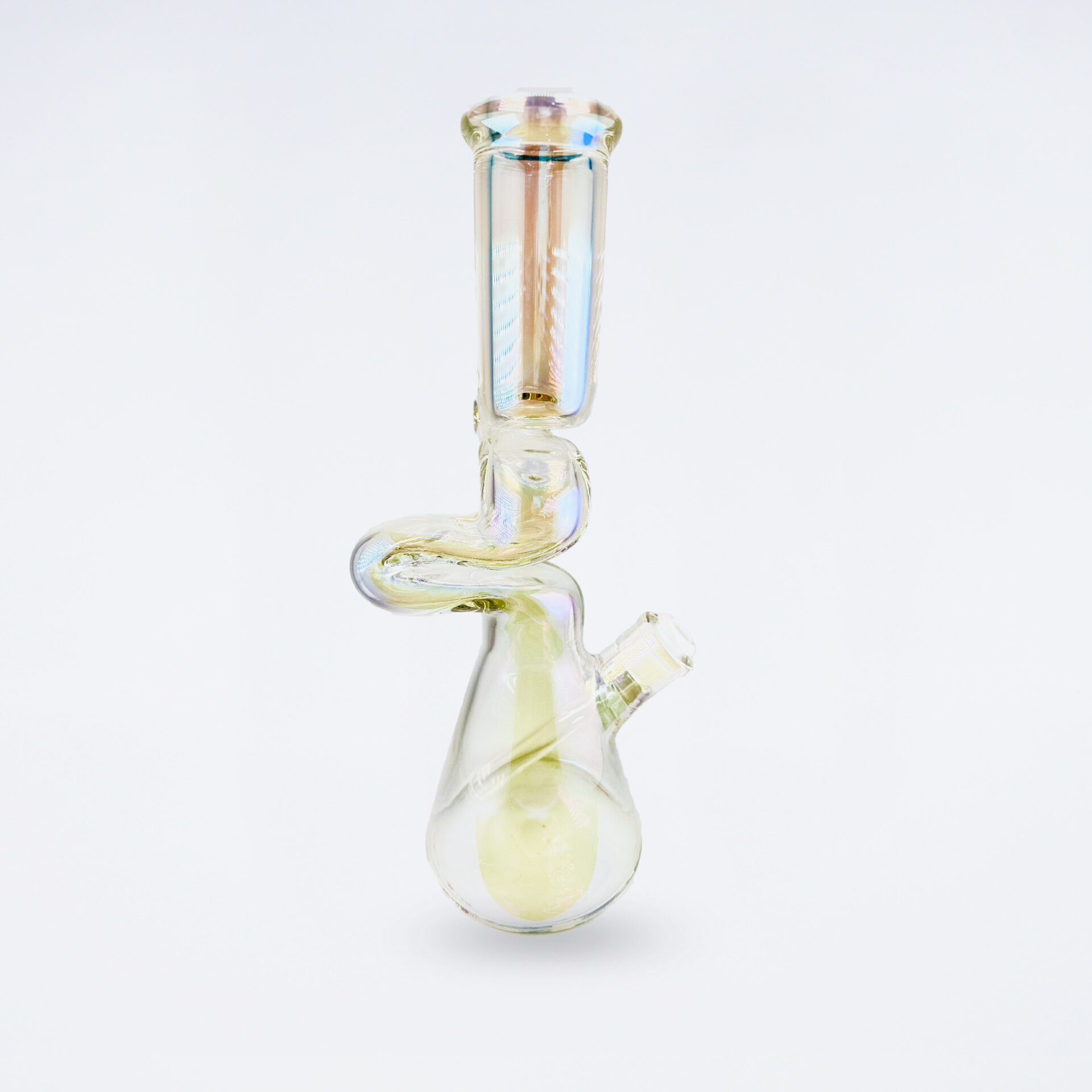 有機的に折れ曲がるガラスが芸術的なクリアトレースボング。