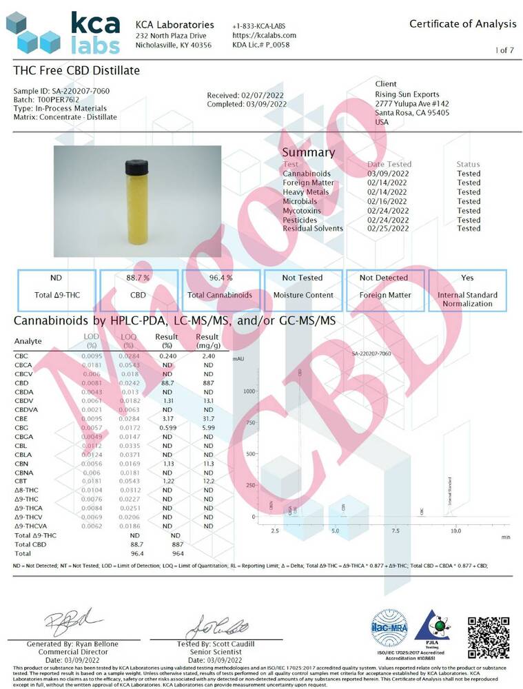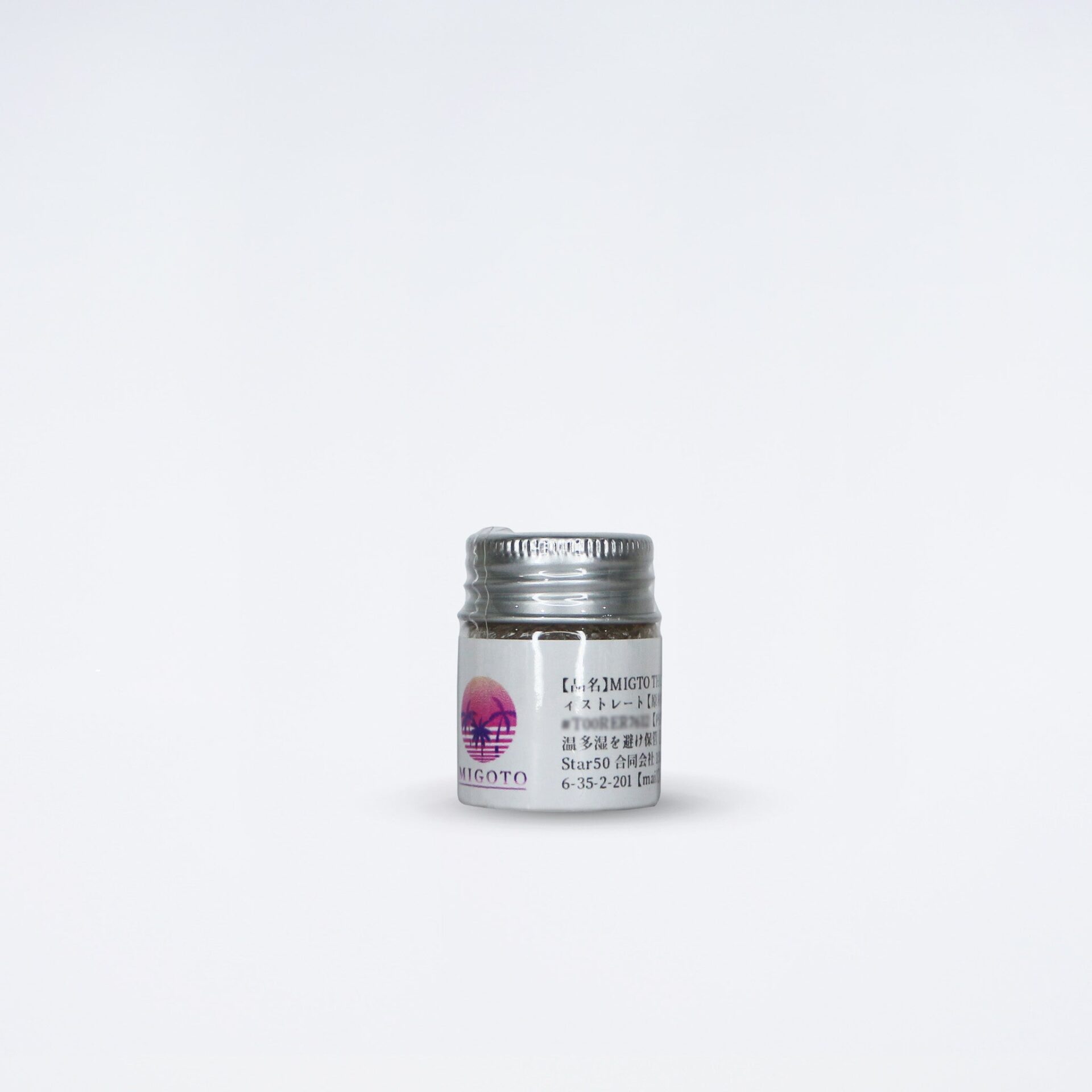 MIGOTO社のブロードスペクトラムCBDは米国でも特別な抽出方法をおこなっている為、見た目からも品質を判断することができます。適切に精製されていないものほど、黒っぽい茶色になり、良質なディストレート原料の色はゴールデンブラウンに近くなります。また香りも低質なものは香りが無いか、異臭がします。良質な原料の香りは森林のような甘い香りが漂います。麻薬取締部の輸入許可を取得したTHC非検出の原料を安心安全にご使用頂けます。本品は、カンナビノイドの知識をお持ちの事業者向けの商品のため、一般消費者の方のご購入・ご使用はお控えください。